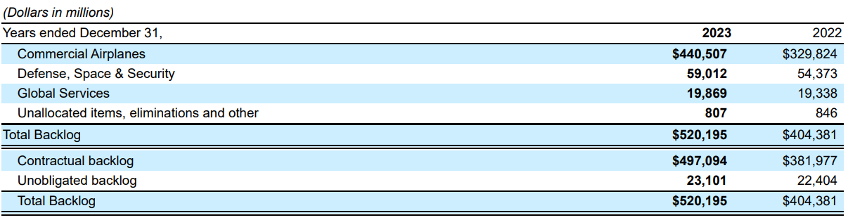 Source: Boeing Form 10-K for Q4 2023
