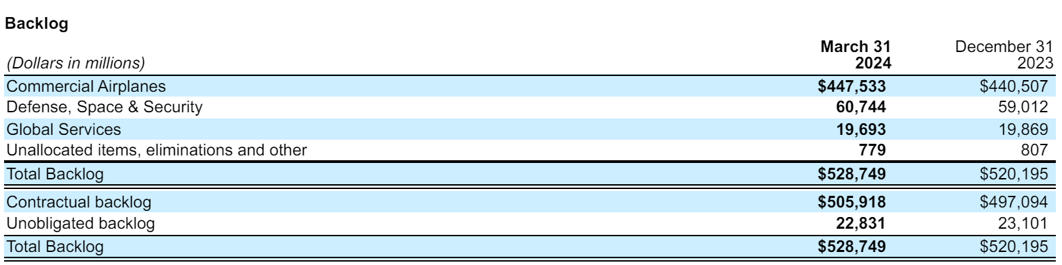 Source: Boeing Form 10-Q for Q1 2024