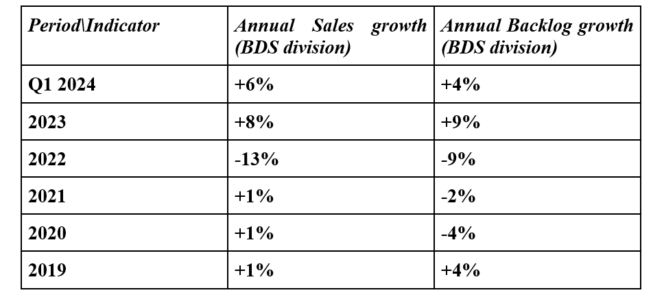 The services business represented by BGS was the fastest growing, and at the same time, most profitable division of the company in Q1 2024. As the company works through BCA and BDS backlogs, the BGS division is set to continue expanding for the foreseeable future.