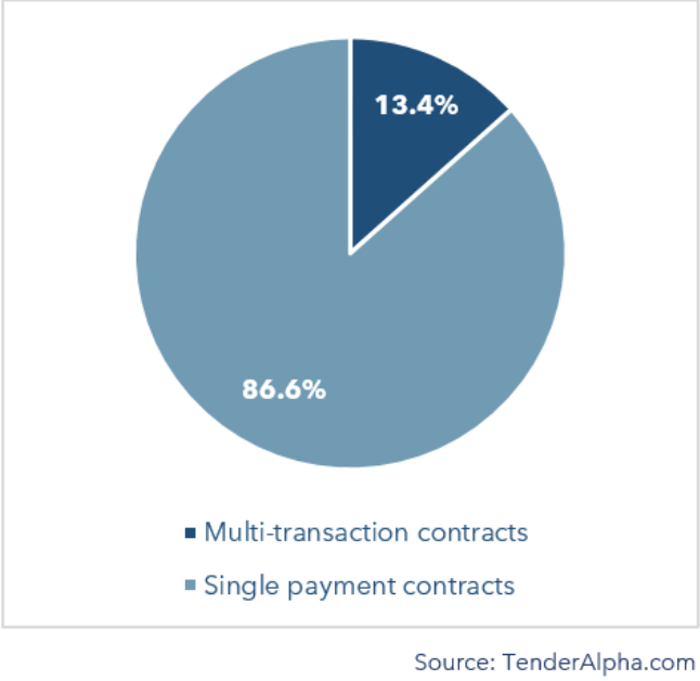 Figure 2. Multiple Transaction vs. Single Payment U.S.Federal Contracts (Number of Contracts Distribution) (%) |