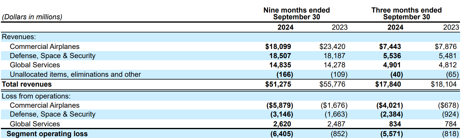 Source: Boeing Form 10-Q for Q3 2024