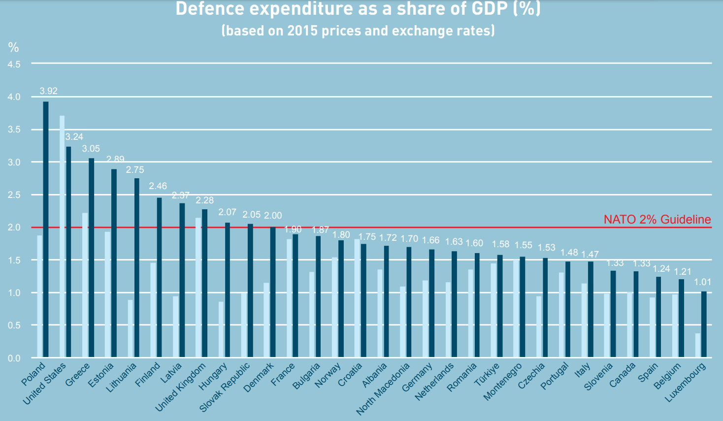 Figure 1. Defense spending by NATO countries in 2023 as a percentage of GDP