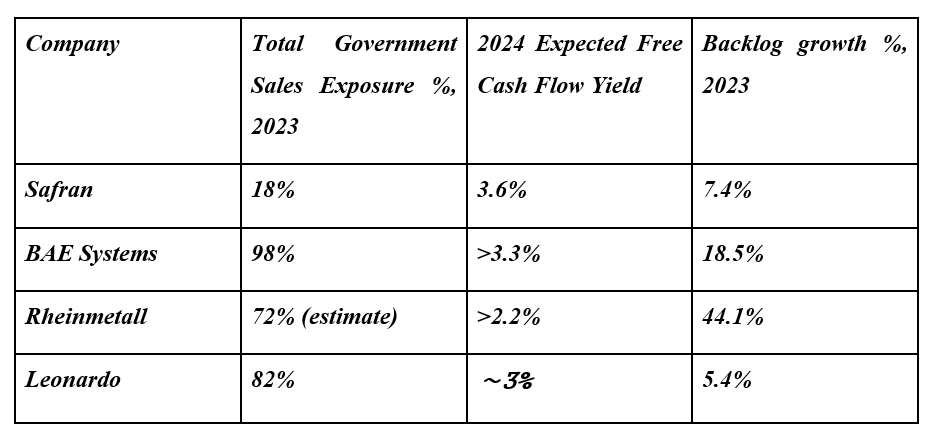 To investigate some of the companies benefitting from the increased defense spending, in this article, we analyze four of the largest defense suppliers in Europe – Safran, BAE Systems, Rheinmetall, and Leonardo with respect to their 2023 annual results and the significance of government contracts for their revenue.