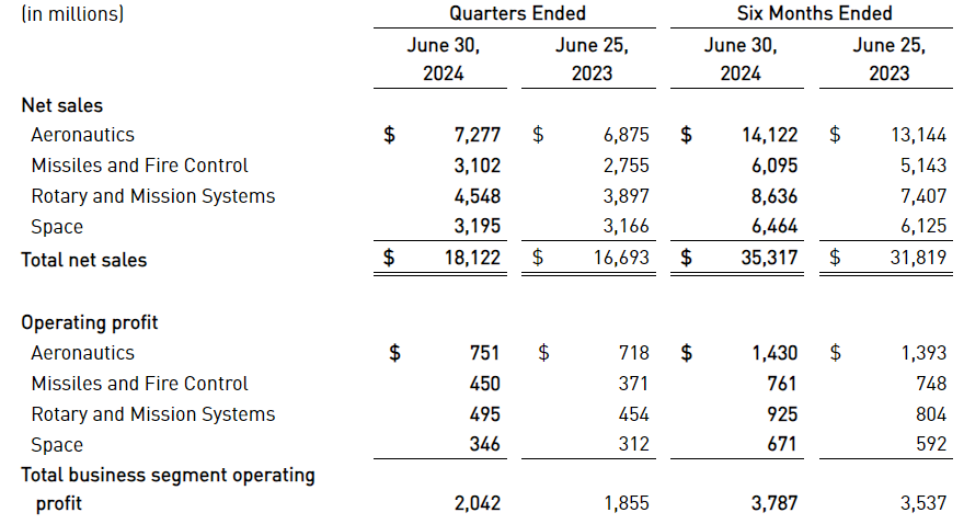 Source: Lockheed Martin Q2 2024 Earnings Press Release