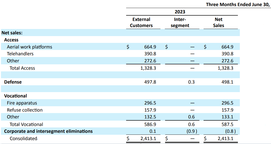 Source: Oshkosh Q2 2023 Form 10-Q