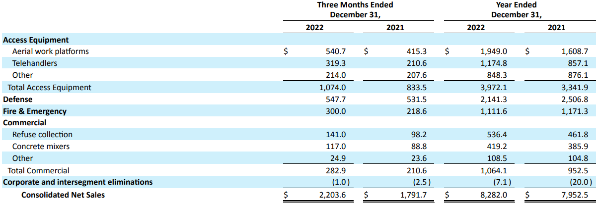 Source: Source: Oshkosh Q4 2022 Form 8-K