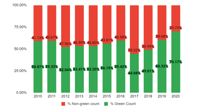 Table 1: Tetra Tech’s percentage of green tenders (by count out of all tenders awarded 1 Jan 2010 – 31 Dec 2020