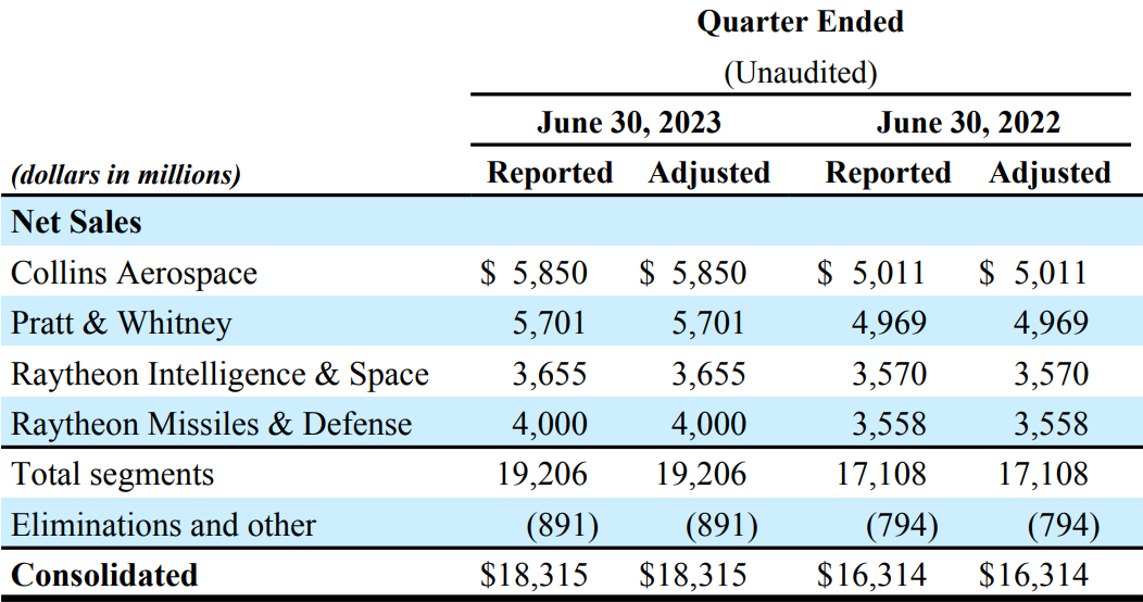 Source: Raytheon Technologies Form 8-K for Q2 2023