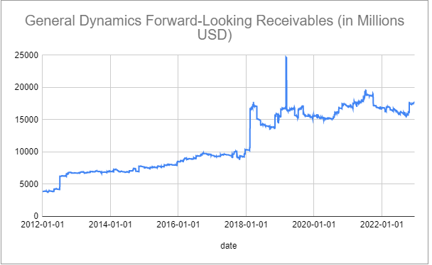 Figure 2: Evolution of forward-looking receivables for General Dynamics, 2012-2022