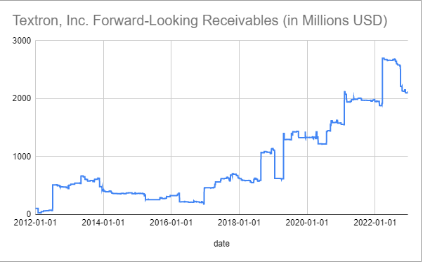 Figure 7: Evolution of forward-looking receivables for Textron, 2012-2022
