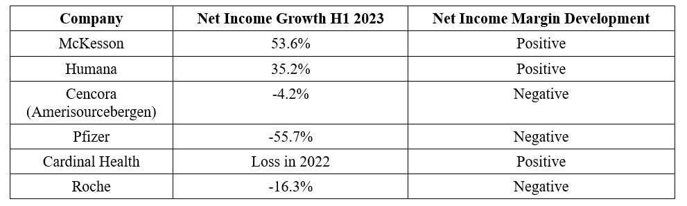 * Pharmaceutical distributors delivered 10.5% revenue growth in H1 2023 and generally improving net income margins.
