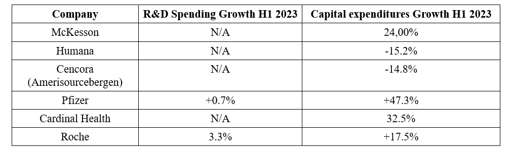 * In H1 2023 companies increased capital expenditures by 15.2% on average. Looking into H2, Drugmakers expect smaller revenue declines while the rest of the industry grows at the H1 2023 pace.